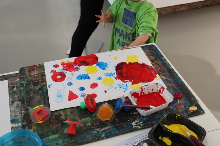 Faciliter l’expérimentation des arts plastiques par la manipulation, le toucher. Éveiller les sens par la couleur et la musique.